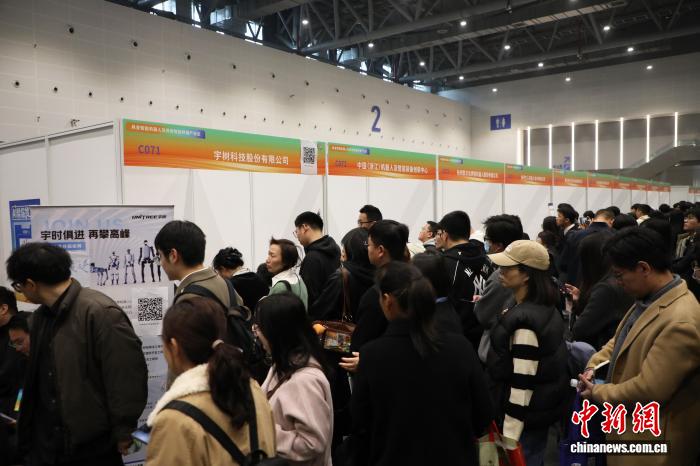3月14日,宇树科技等科创公司的岗亭蒙到供职者的辽阔喜爱。中新社记者 吴君毅 摄